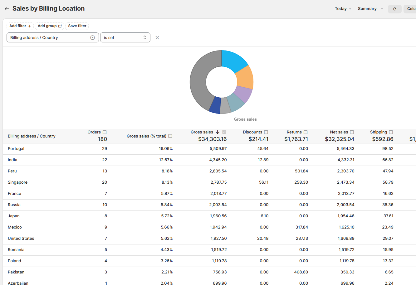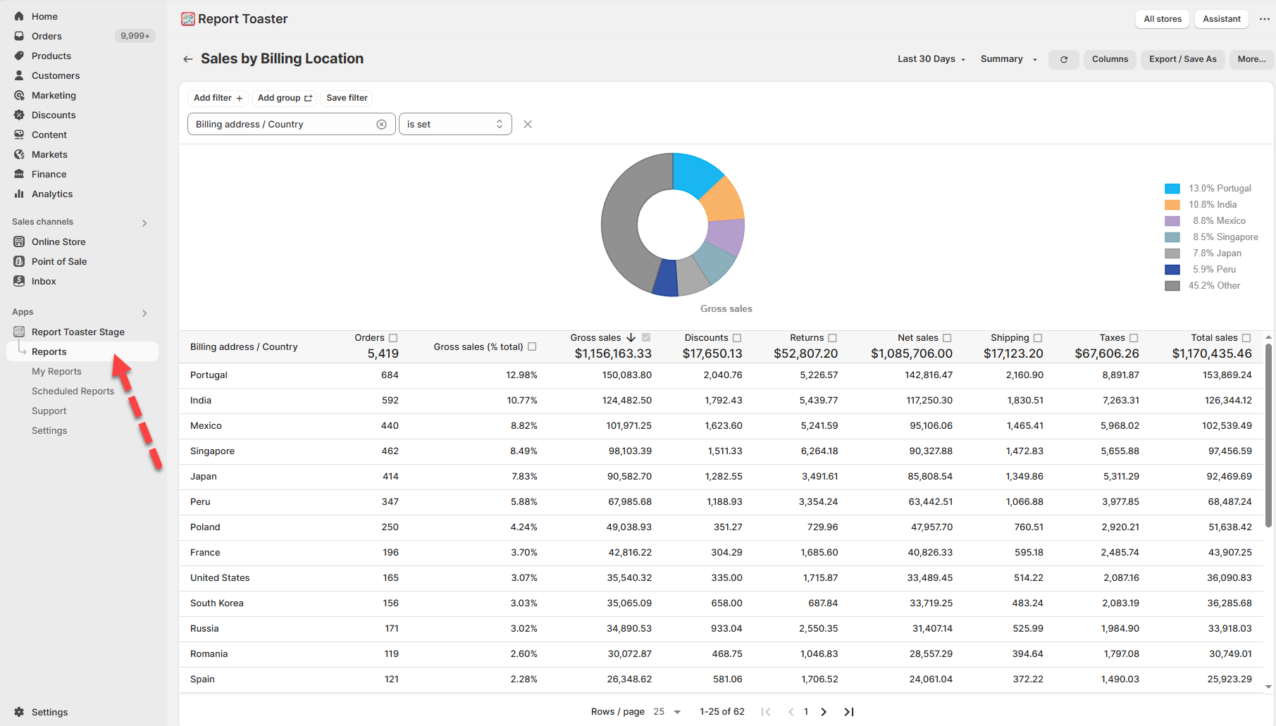 We'll begin with a Sales by (Billing) Location report from the built-in Reports section like so: