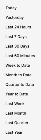 Likewise, 'Week to Date' will have very different data depending on if you are checking on a Tuesday morning vs. a Friday afternoon.