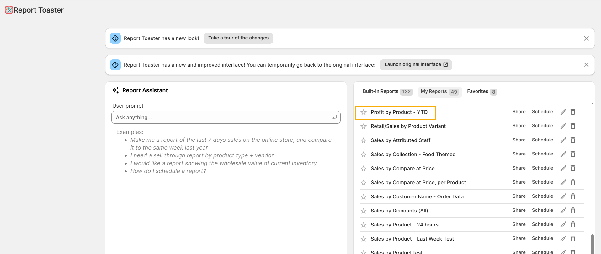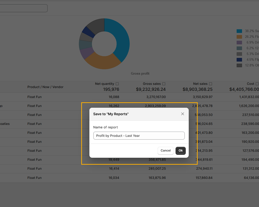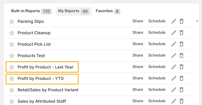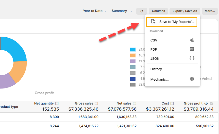 I could go to Save to My Reports, call it Profit by Product - YTD 2, and click Save.