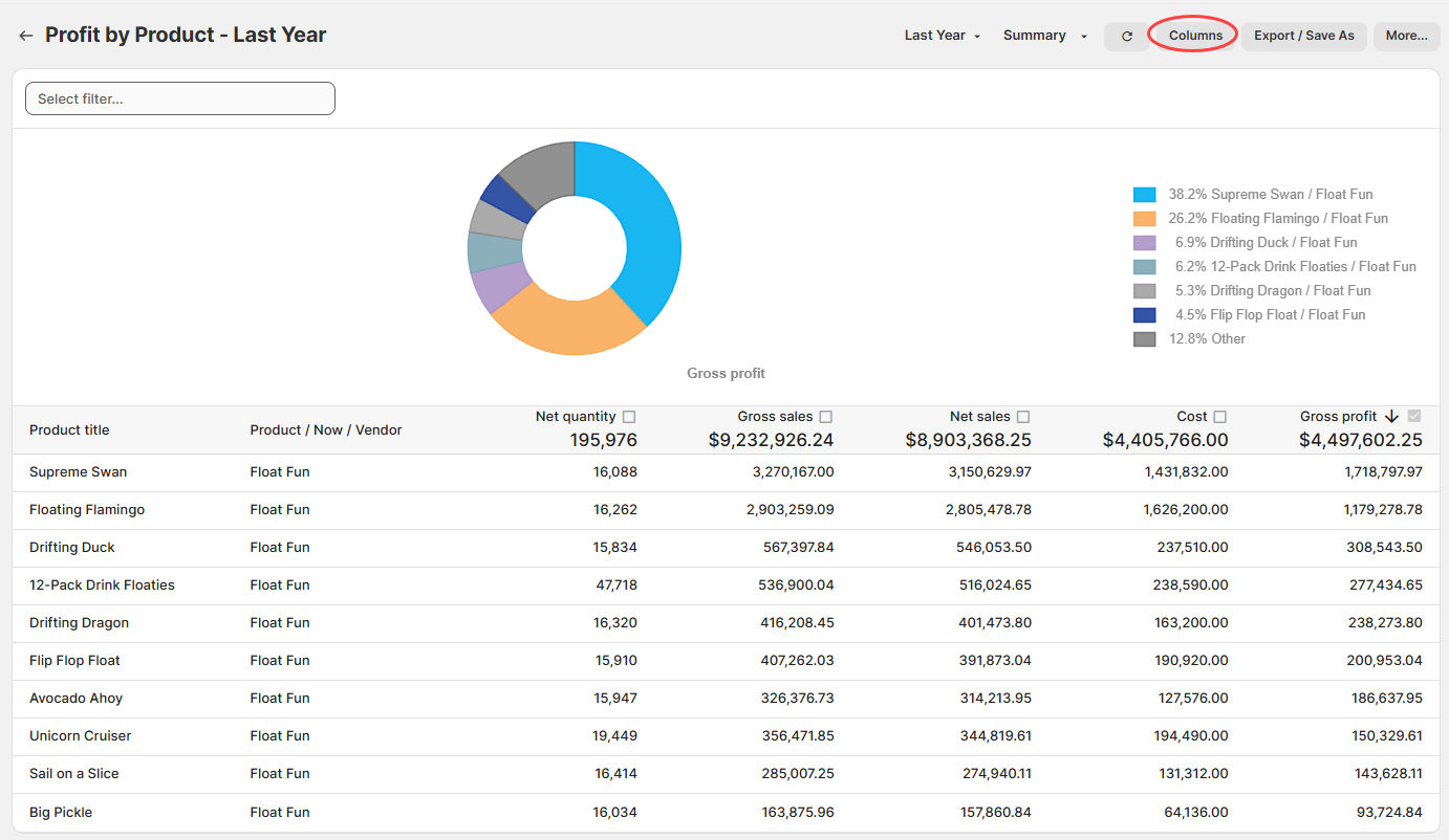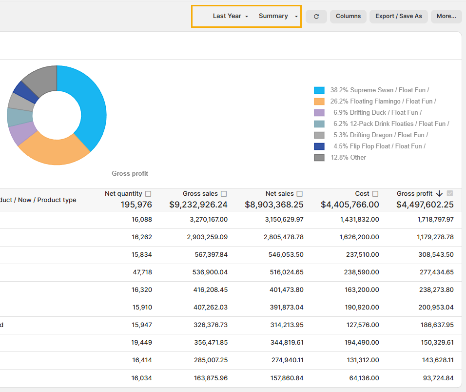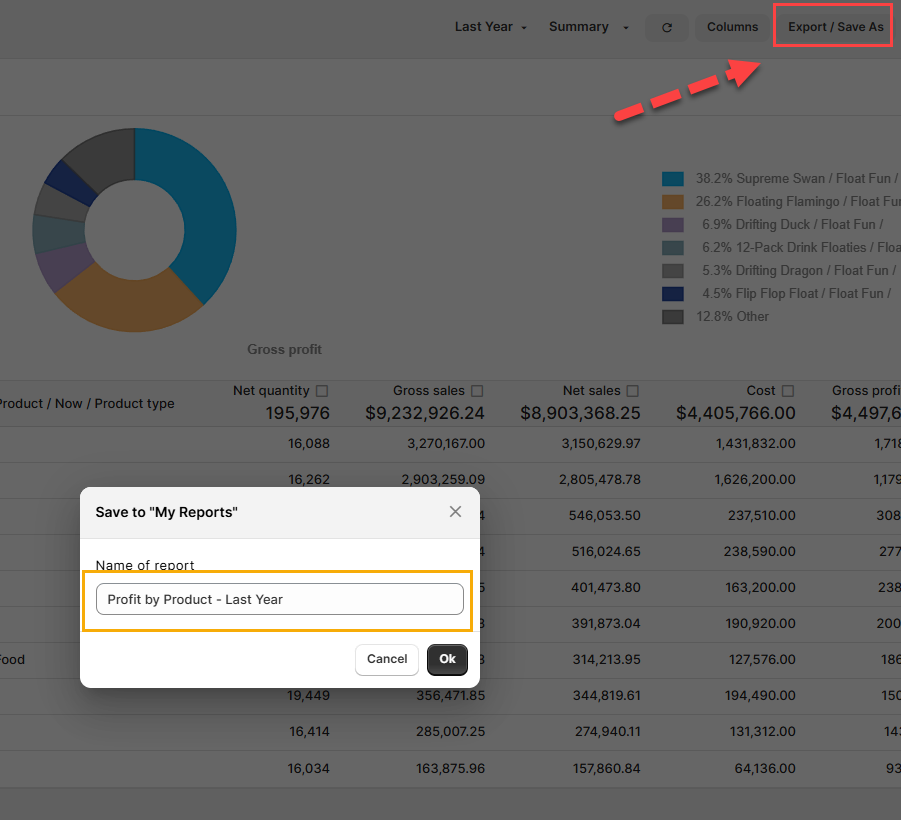 This time we'll give the report a different name, so let's call it Profit by Product - Last Year