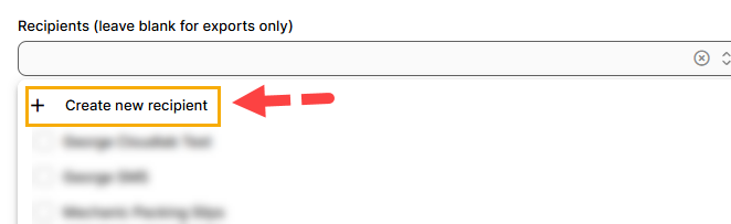 If we had any pre-existing recipients, they would appear here as an option (which you'll see in a moment). But for now, let's create our first recipient by clicking 'Create new recipient'.