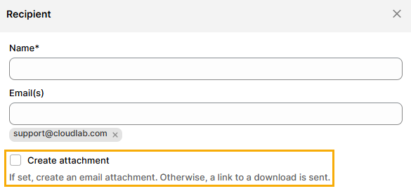 Note that if you fill out an Email for your recipient, (above), a toggle will appear for Create attachment: