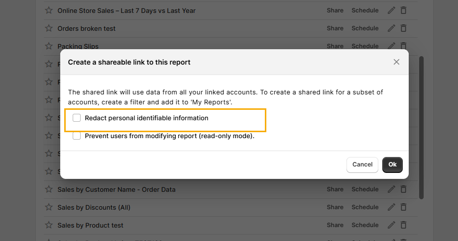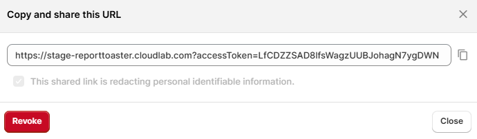 If you later want to go back and add/remove PII from a report, you will need to revoke the link (see below) and create a fresh one with this toggle enabled/disabled.