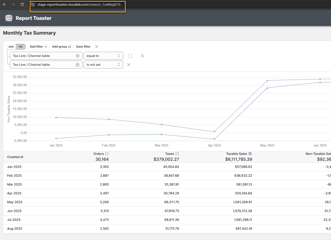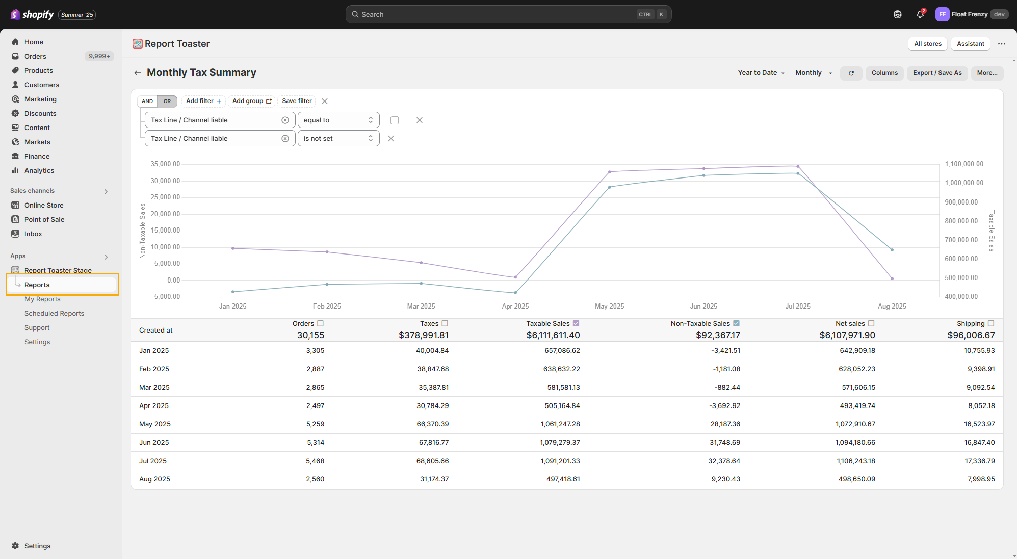 We'll start with the Monthly Tax Summary report from the built-in reports section