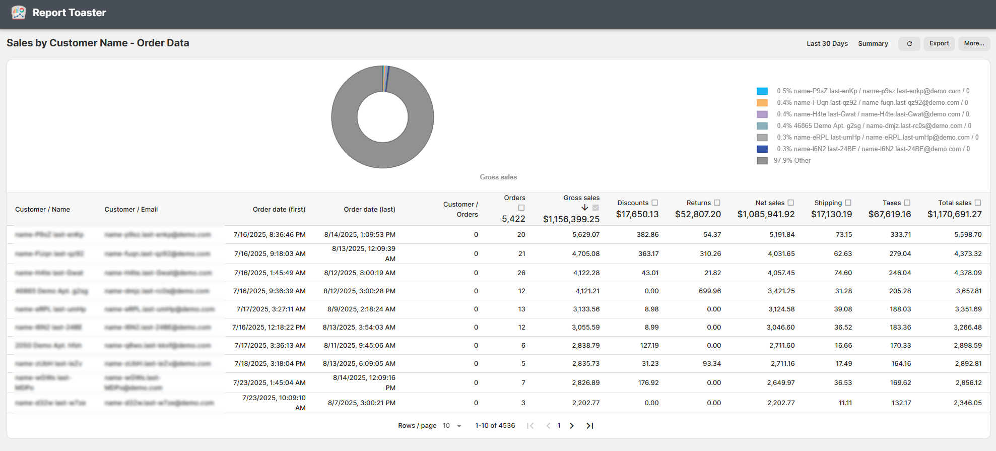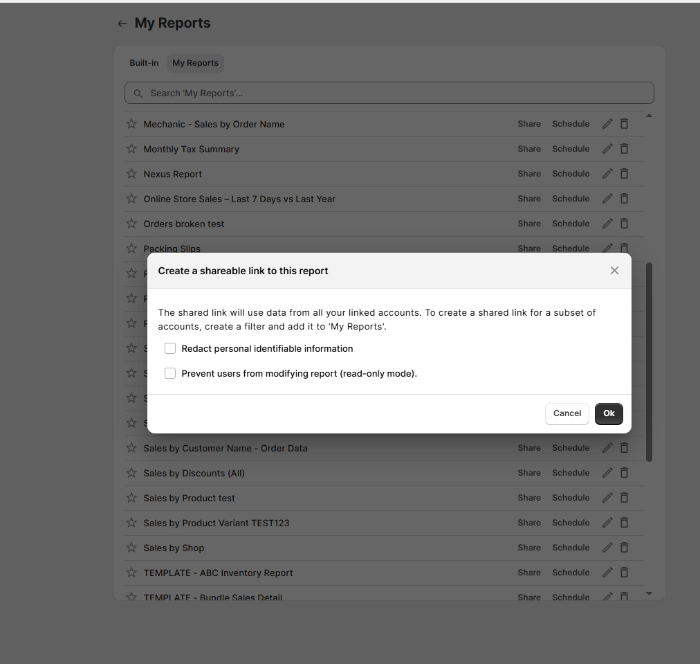 This is therefore a great way to share data with another recipient without having to give them access to your Shopify or your Report Toaster account.