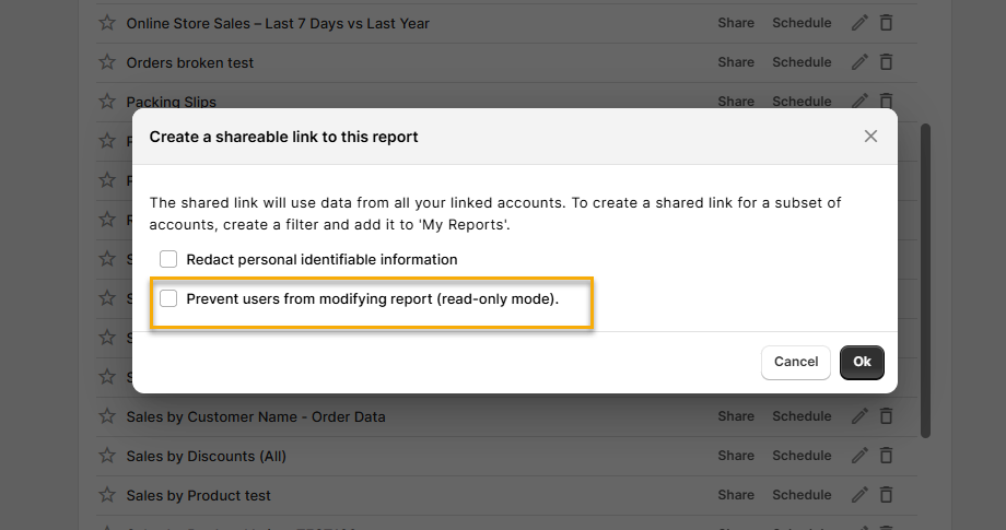 First, you have the option to prevent users from modifying the report (read-only mode)