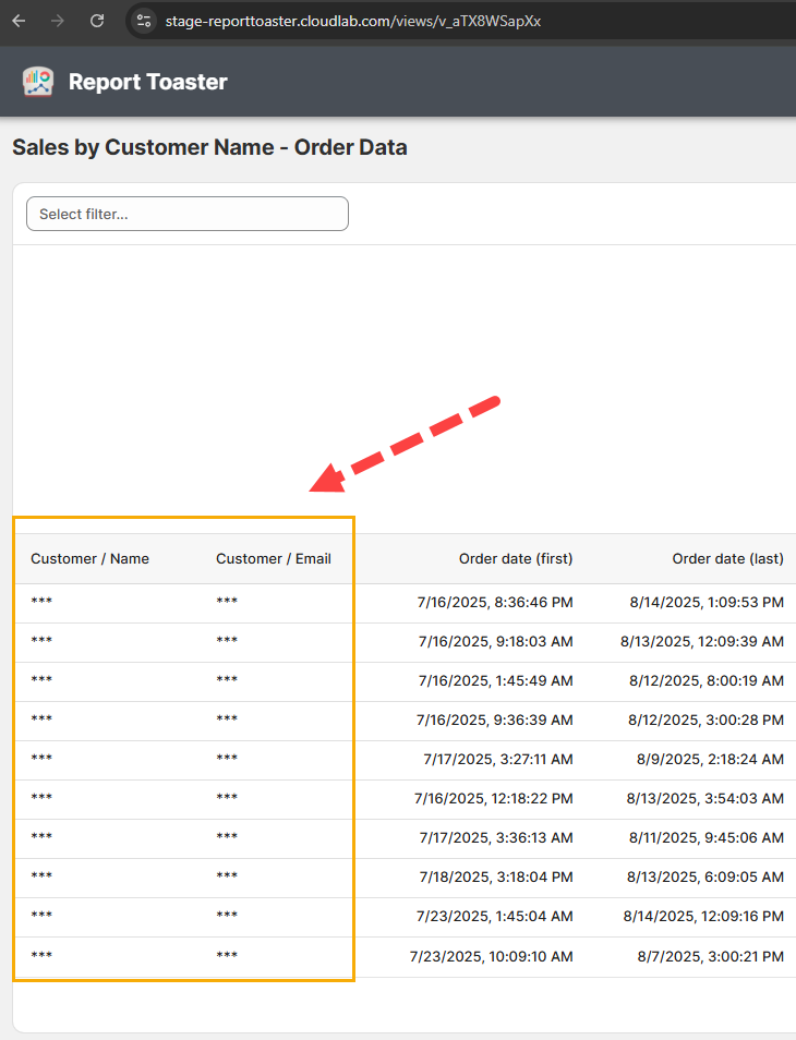 This essentially replaces any fields like customer name, email, phone etc with asterisks (***)