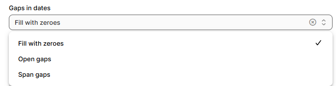 - Fill with zeroes. This is the default option, and fills any gaps in the time span with 0 values (as applicable).