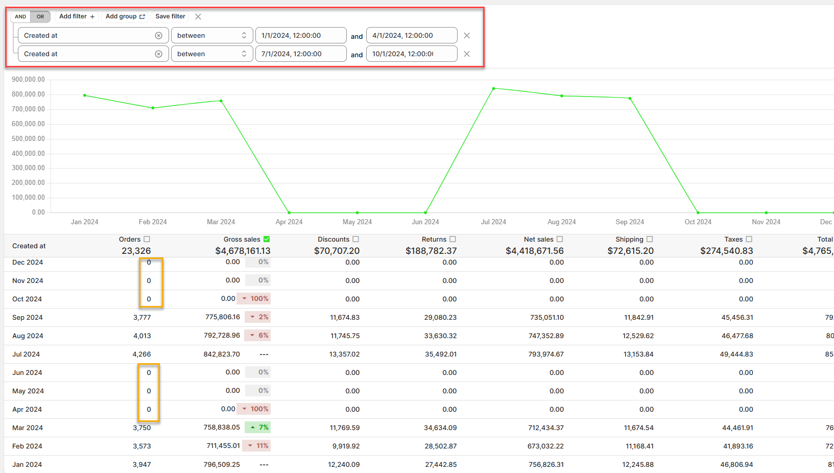 Notice that now, it goes straight from Jan-March 2024 to Jul-Sept 2024