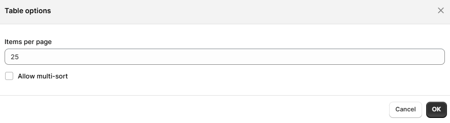 - Under Items per page, you can choose how many rows you want to be displayed on the table for a report. Normally your options under a table are limited to 5, 10, 25 or 100 rows per page of a report, but this is useful if you need a very specific number (e.g. 30 rows because you are compiling a top-30 products list or something).
