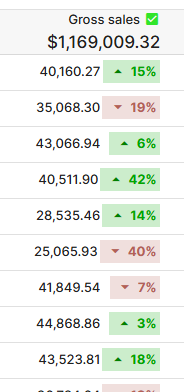- The metric's value (e.g. $100,00 in Gross Sales). You probably don't want to remove this unless you ONLY want to see the increase/decrease.