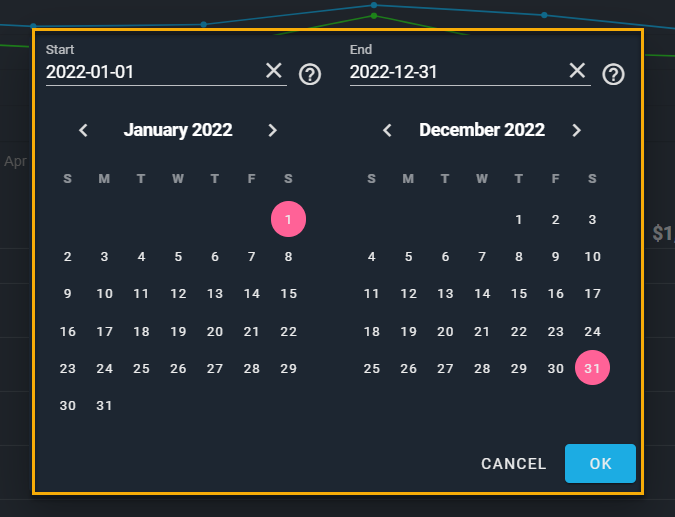 Here a dialogue box will pop up that lets you choose a second date range to add to the report.