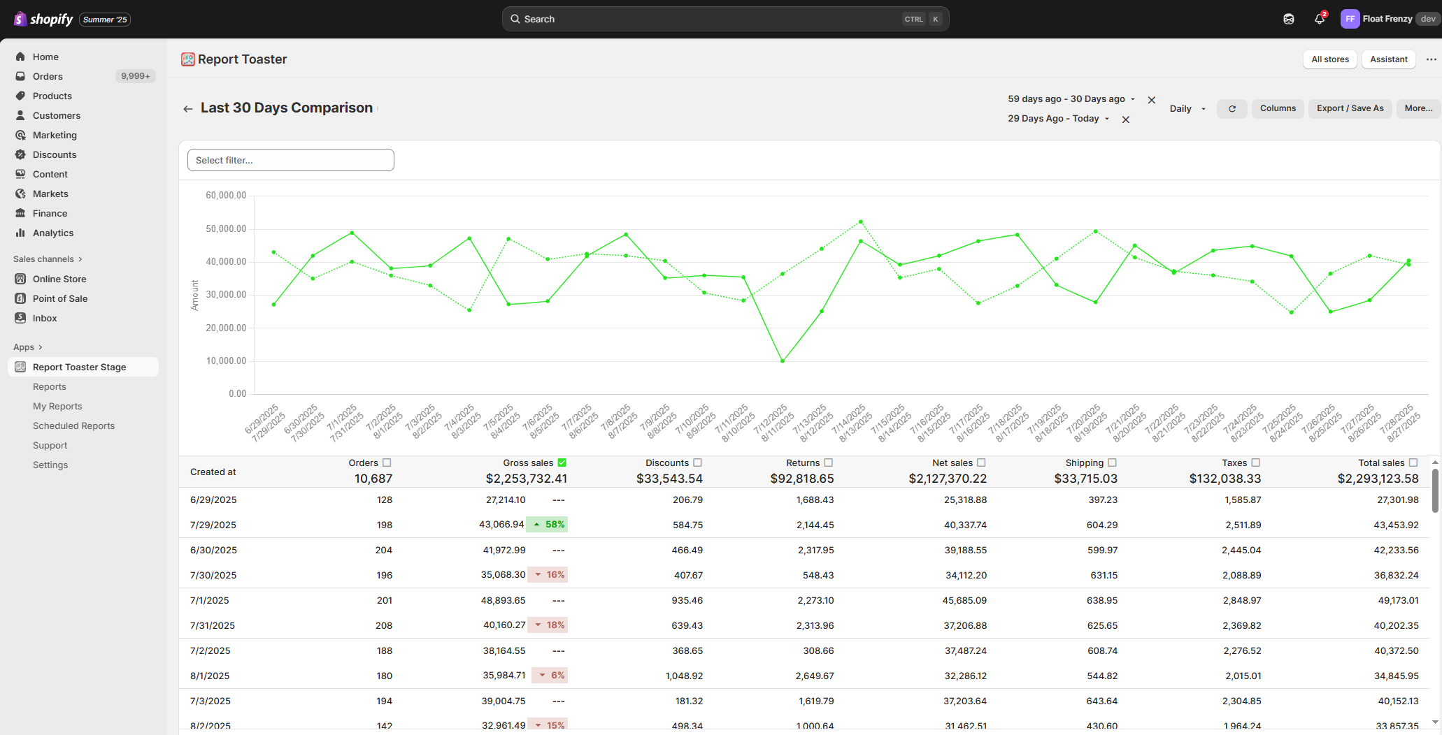 Here's an example on one of our built-in reports, the Last 30 Days Comparison (under Sales Over Time):
