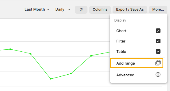 First and foremost, let's look at how to add another date range to a report that doesn't have one yet.
