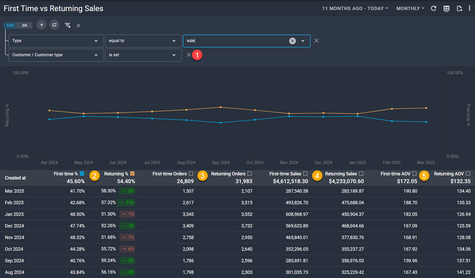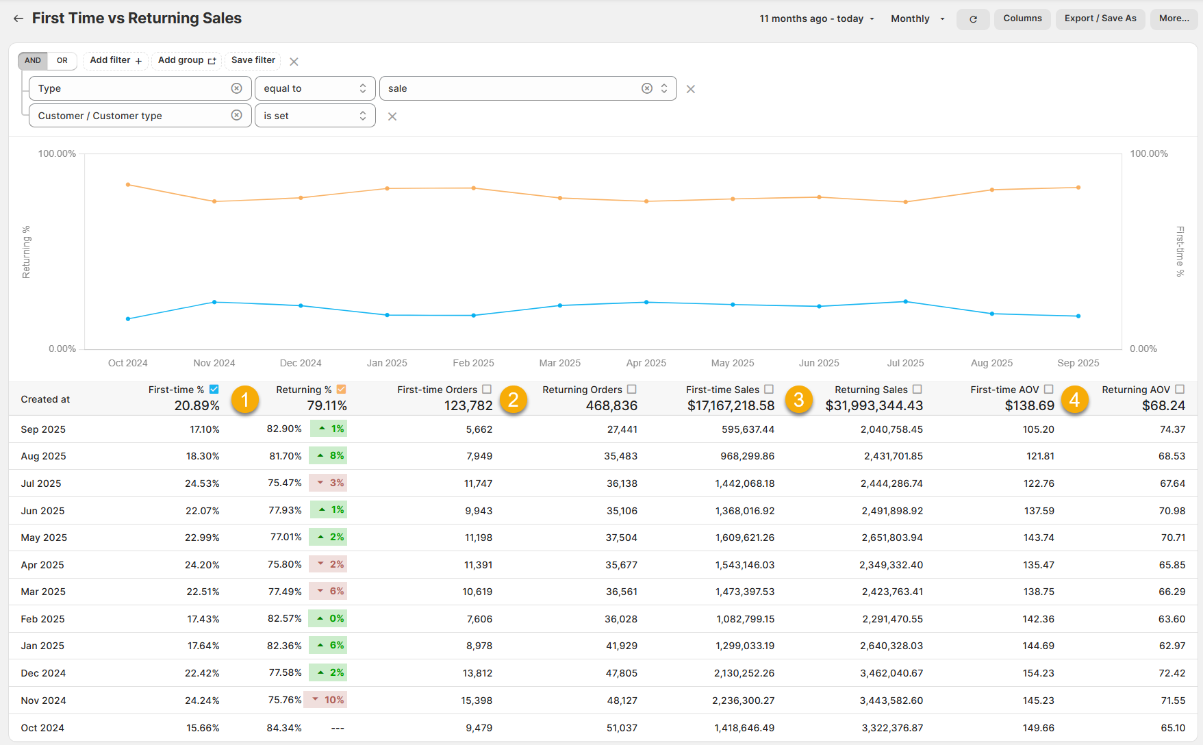 First Time vs Returning Sales
