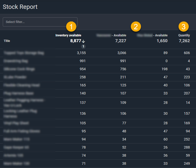 3.) ____ - Sold: How many units you currently have sold from a particular product/variant/vendor at this location.