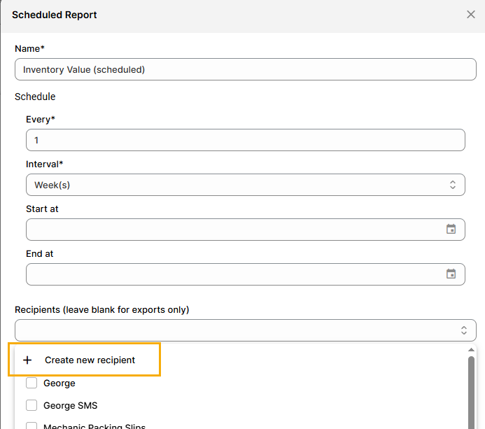 When you get to the 'Recipients' field in the step above, click the box and select '+ Create new recipient'