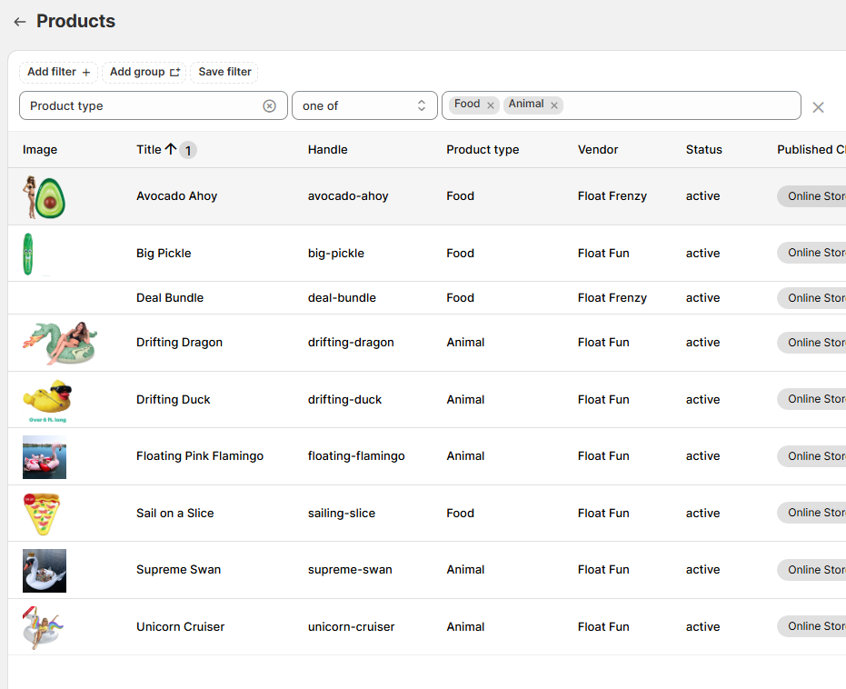But unlike Collections, the tags assigned to a product are visible at the product level, making it easy to group them for reports.