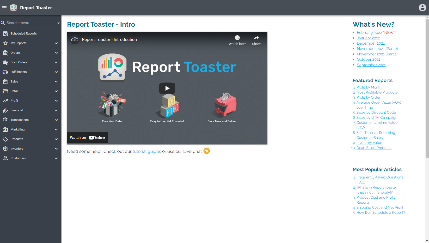 Featured Reports which merchants have found particularly useful. If you're new to Report Toaster or don't know where to start, why not check out some of the reports that our other merchants have recommended to drive new value to your business?