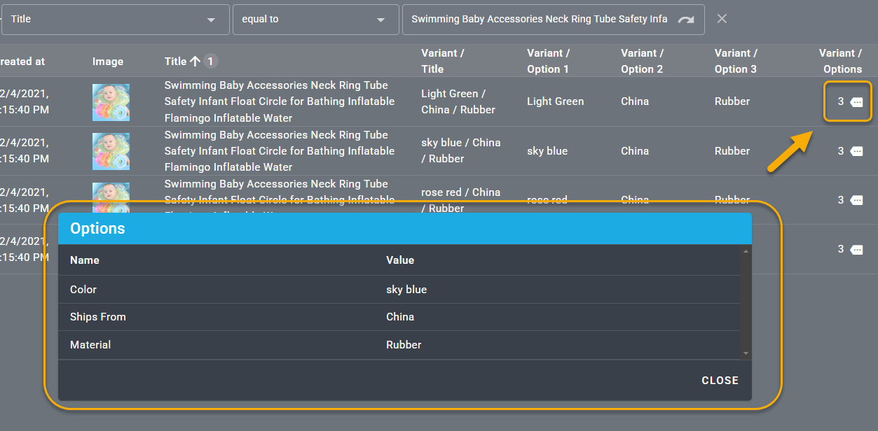 Now, Variant / Options exists. This contains all options together, and crucially, a name for each: