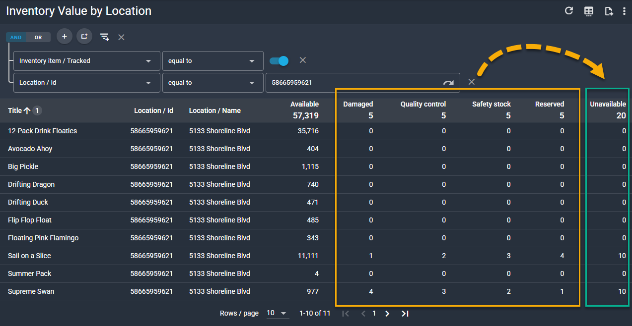 As well as the existing fields for things like Available, On Hand, etc, we've been able to add all of the different states that make up Unavailable as well - Quality Control, Damaged, Safety Stock and Reserved.