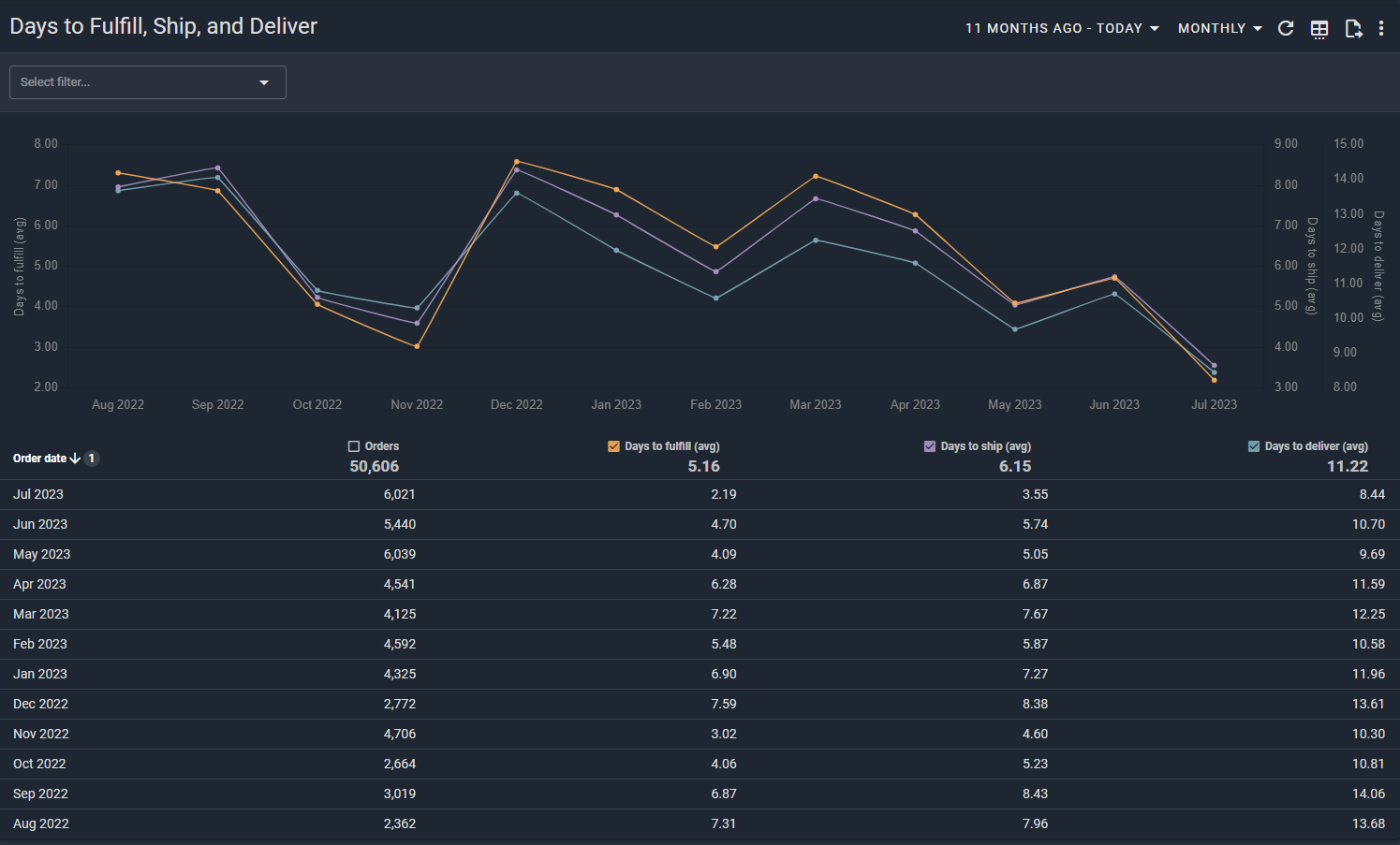For example, here is our Days to Fulfill, Ship, and Deliver report from the list below:
