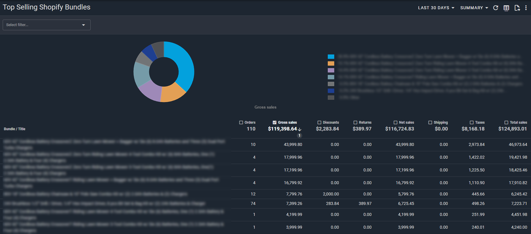 Then you can use the Top Selling Shopify Bundles report to compare the sales numbers for each bundle individually to see how they are performing.