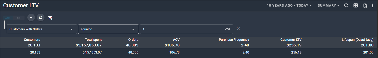 However, as there is no report specifically dedicated to calculating LTV in Shopify, we thought it was best to update our existing Customer LTV report to include these different metrics.