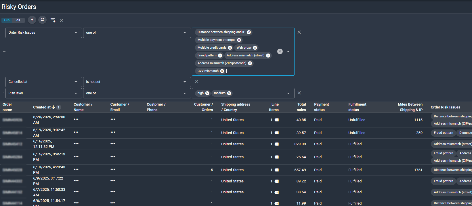 Using this report, you can see all the key information about the order (name, email, phone, country, items ordered, sale value, has it been paid/fulfilled) and all the vital risk information too .