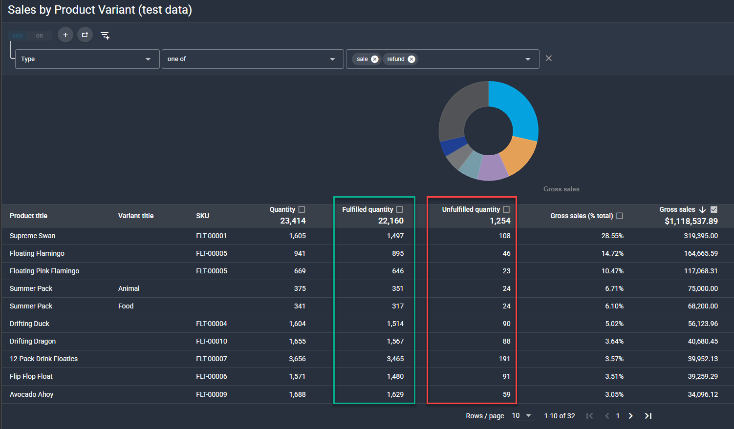 For example, you could add them to Sales by Product and see, out of how many units sold, how many have been fulfilled/unfulfilled.