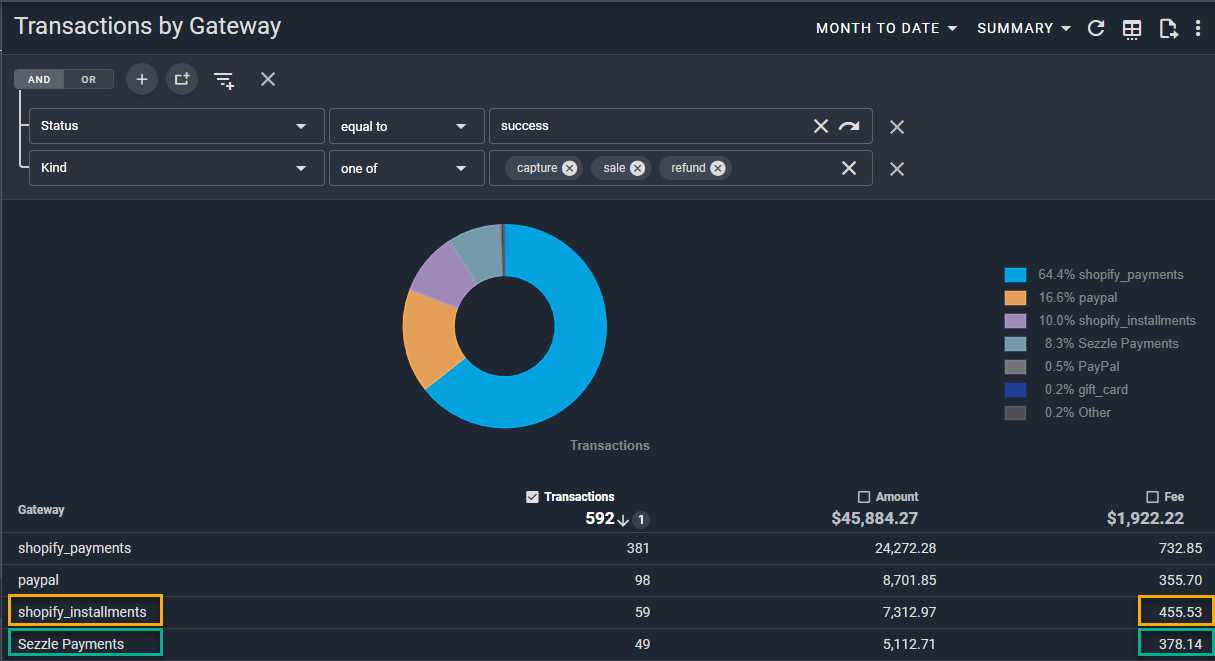 Here's an example with the rates provided for Shopify Installments and Sezzle respectively: