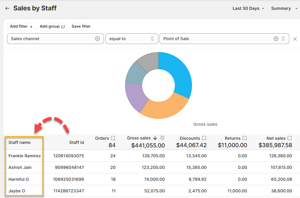This works both for Staff Name and Attributed Staff Name, in case you're making use of Attributed Staff in your Sales.