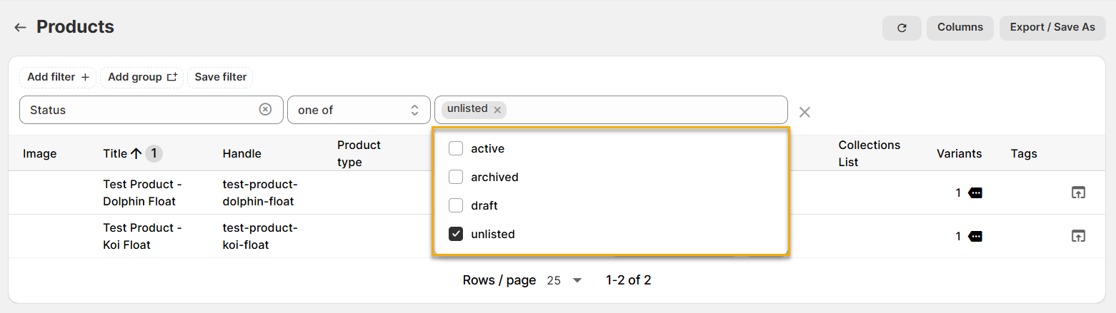 Recently, Shopify added Unlisted to their list of available Product Status options: